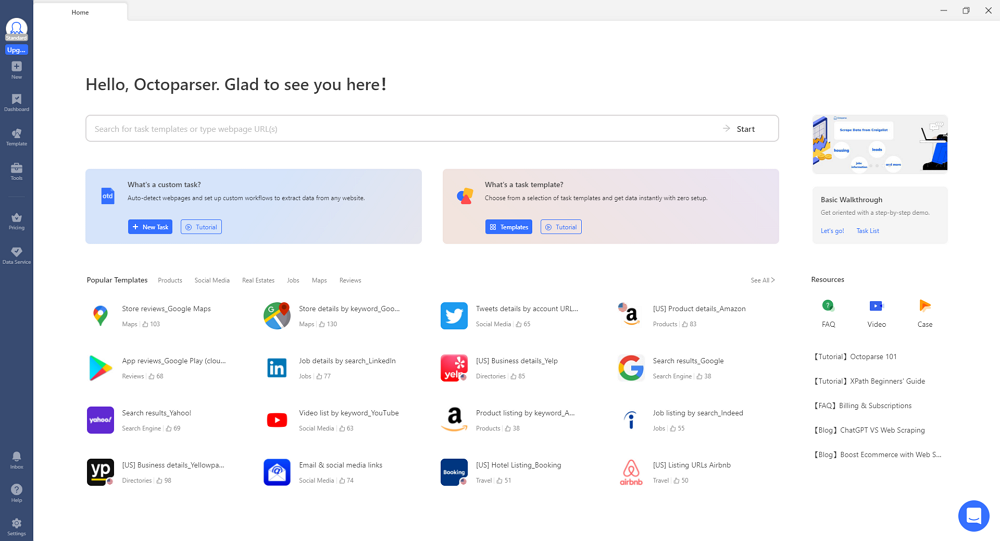 Octoparse helps you scrape pricing data from e-commerce websites without writing code. You can use a visual interface to select data, run scraping tasks in the cloud, and export results in multiple formats. This makes it easy for non-technical teams to collect competitor data quickly without relying on developers