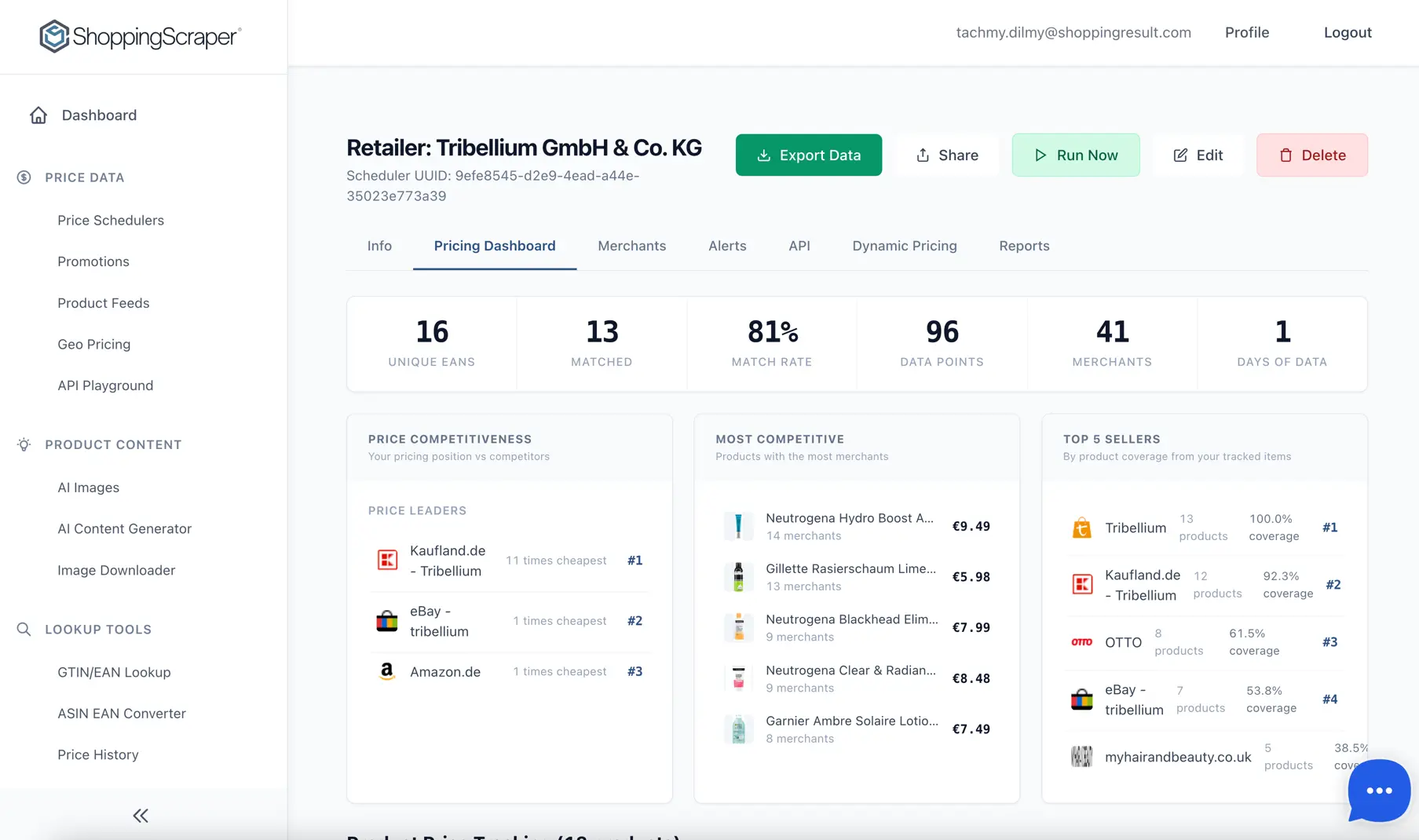 ShoppingScraper is an eCommerce-focused scraping platform designed to help retailers, brands, and agencies extract real-time pricing and seller data from major online marketplaces. Because of its focus on marketplace coverage and EAN/GTIN-based matching, ShoppingScraper works best for teams that primarily need structured price data from platforms like Amazon, Walmart, Bol.com, and Google Shopping.